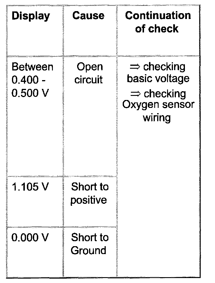 - Check Oxygen sensor control learned values at part load (multiplicative) in display zone 2.