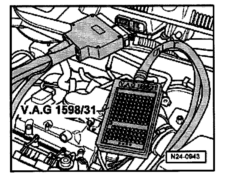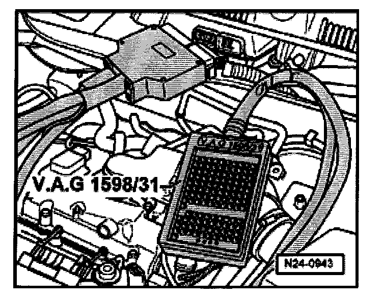 - Connect VAG1598/31 test box to control module wiring harness. Engine Control Module (ECM) is not connected.