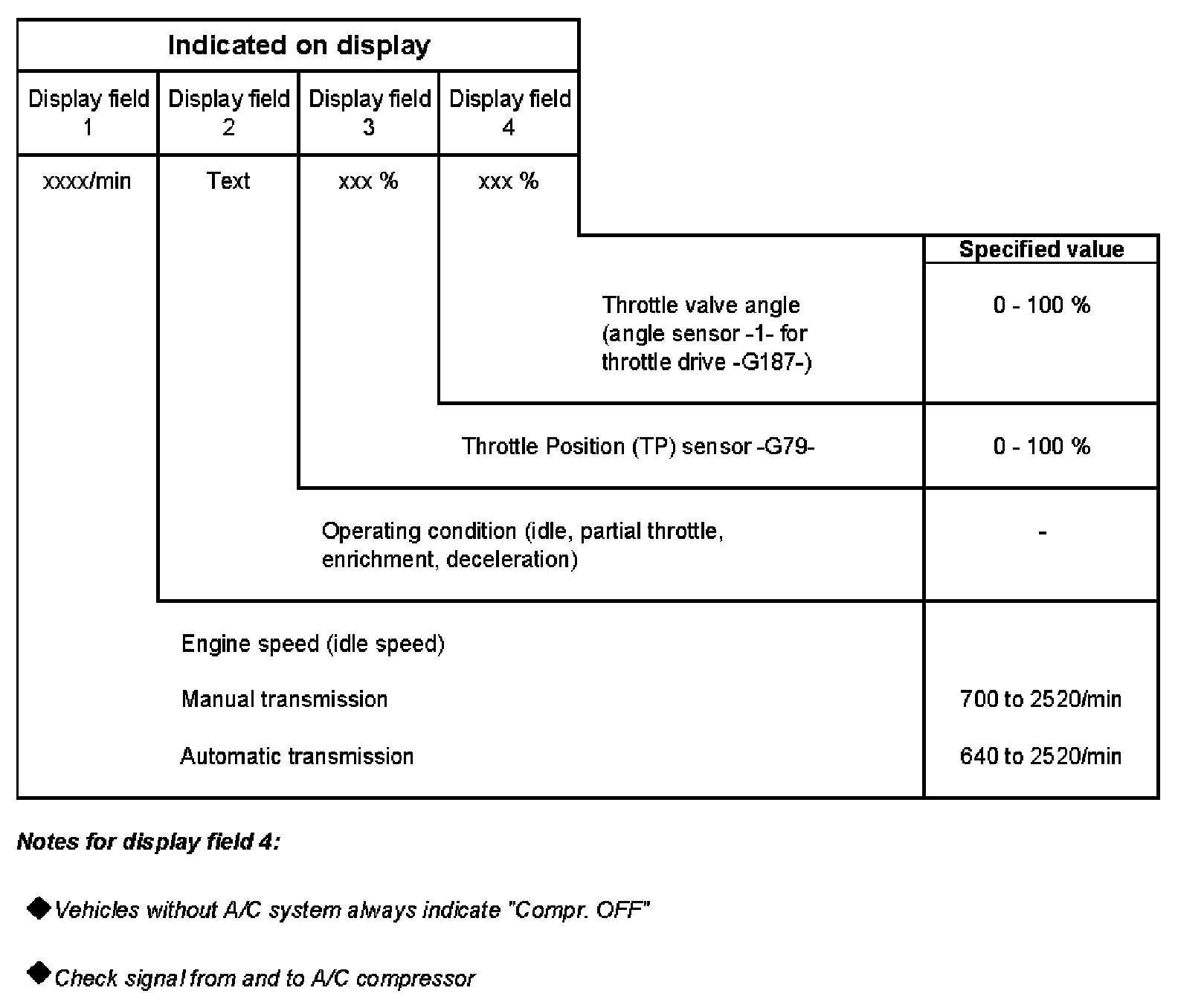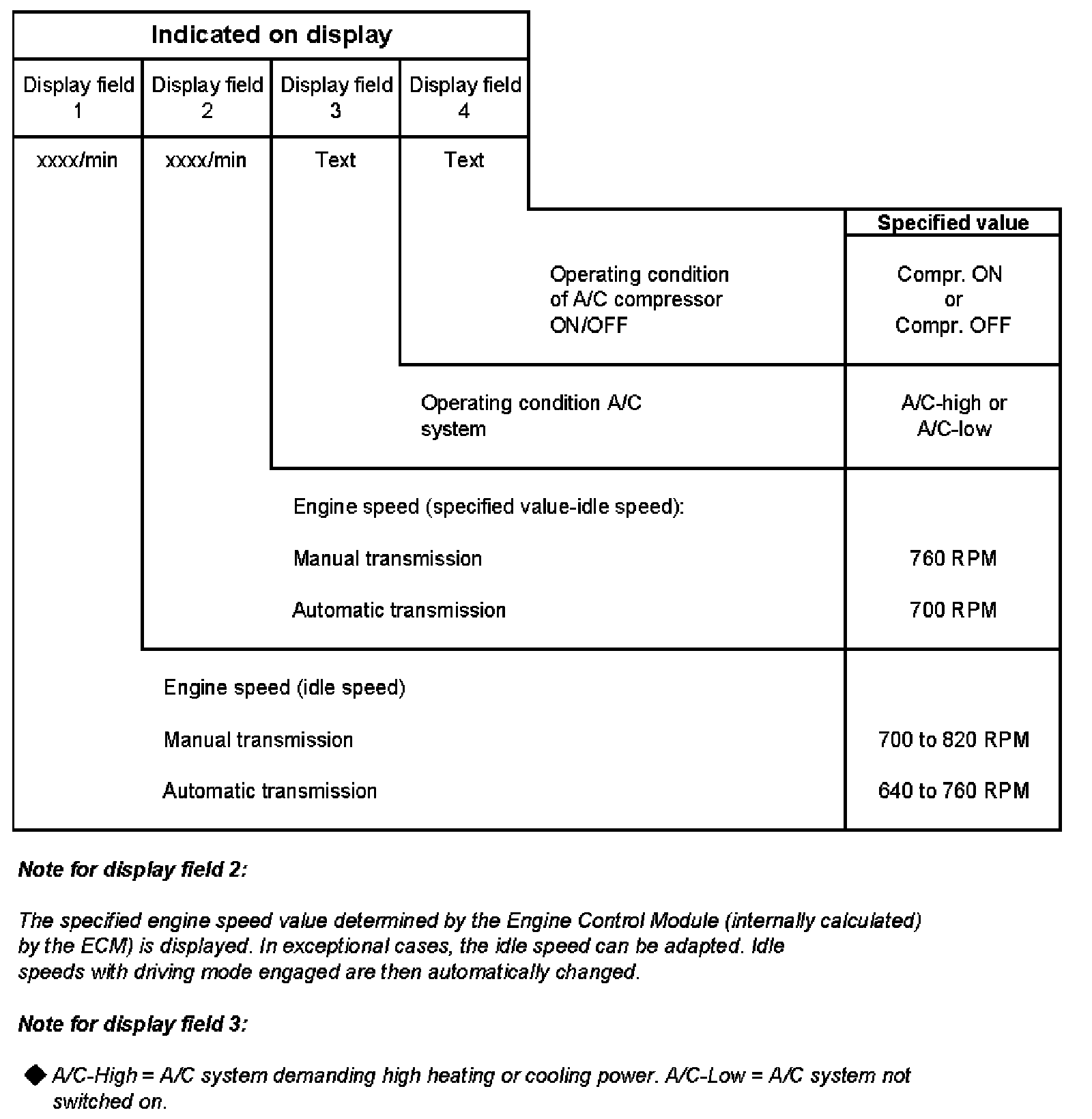 - Ignition on, engine standing
