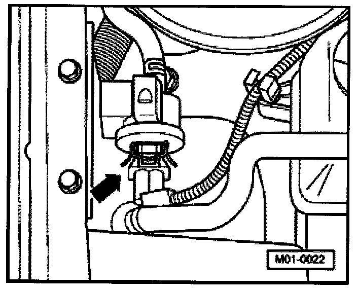 - Disconnect 2-pin harness connector from Evaporative Emission (EVAP) canister purge regulator valve -N80- (arrow).