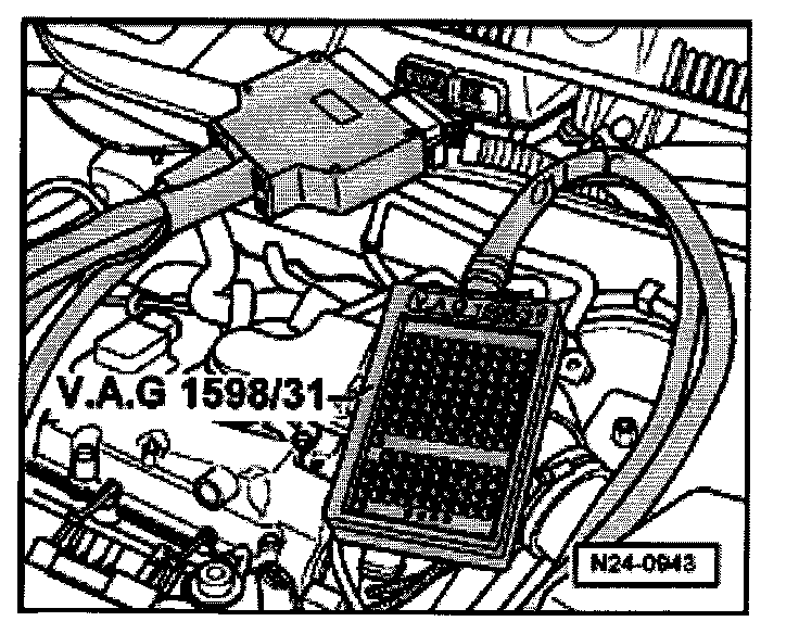 - Connect VAG 1598/31 test box to control module wiring. Do not connect engine control module.