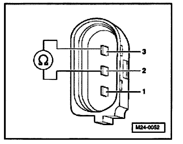 - Measure sensor resistance between terminals 2 + 3 of harness connector to sensor.