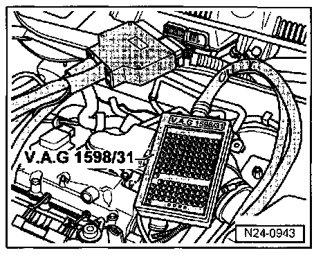 - Connect VAG1598/31 test box to Engine Control Module (ECM) wiring harness. Engine Control Module (ECM) is not connected by this action.