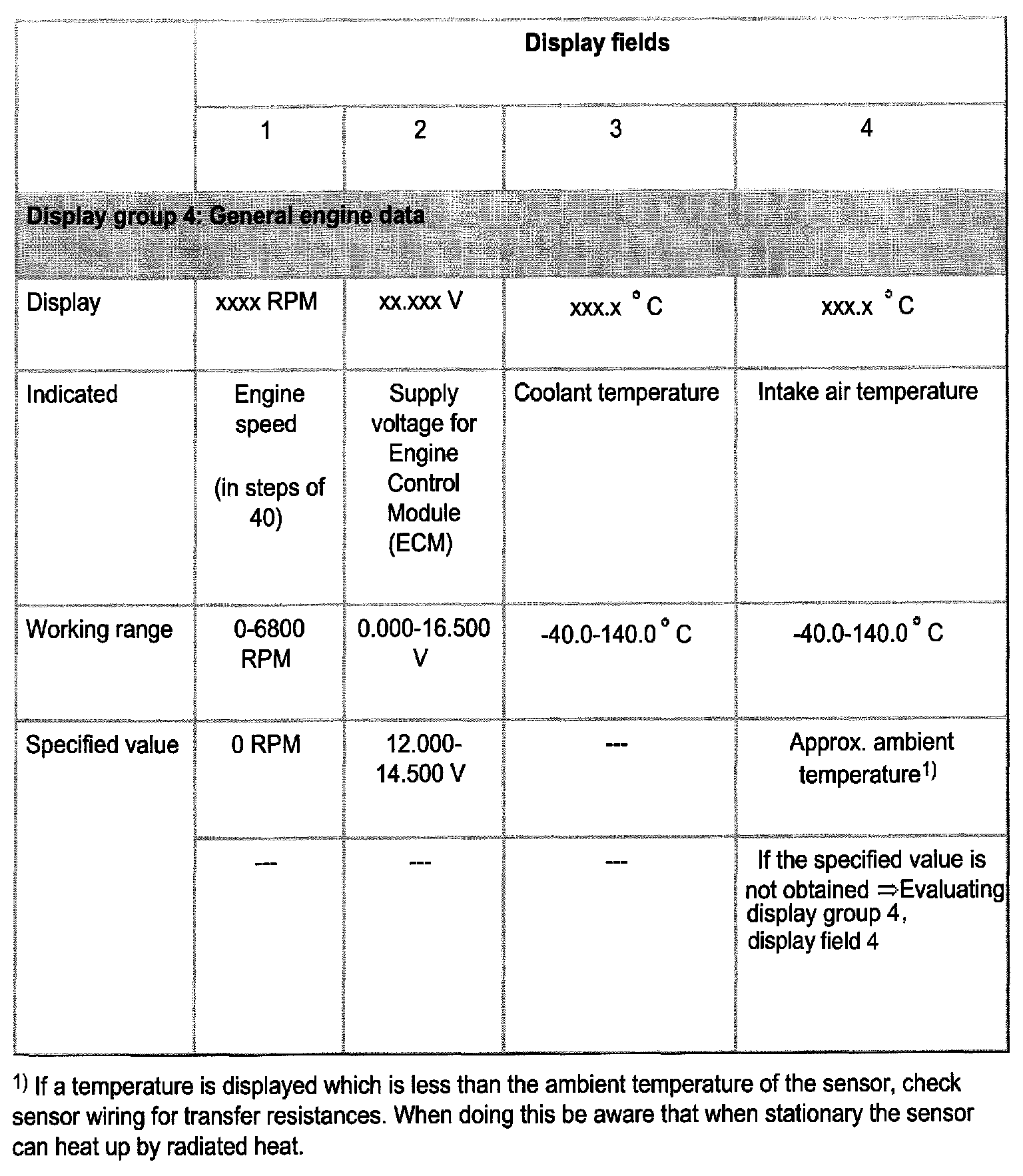 - Read intake air temperature value in display field 4.