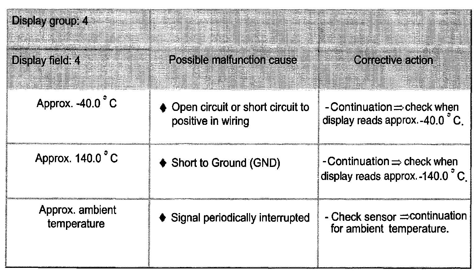 Continuation of check when display reads approx. -40.0 °C: