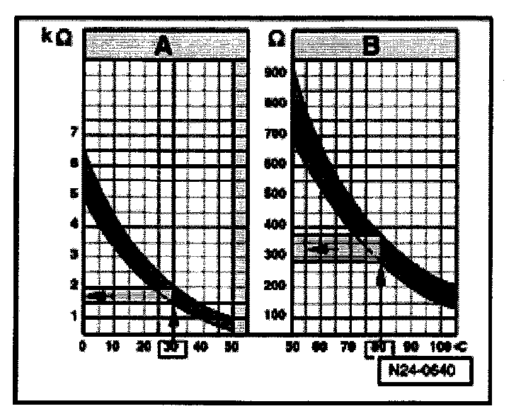 - 30 °C is in range -A- and corresponds to a resistance of 1.5-2.0 Kohms