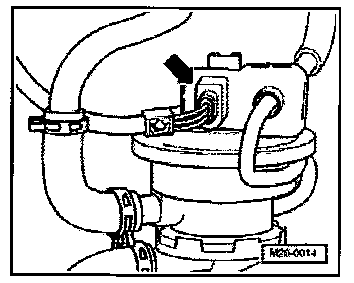 - Disconnect 3-way plug from leak detection pump (V144) -arrow-.