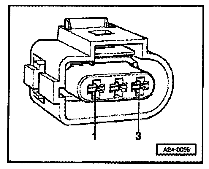 - Connect VAG 1527 B adapter cable between contact 3 (Plus) of plug and ground.
