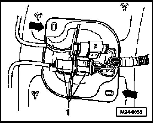 - Unscrew protective cover (arrows) and disconnect 6-pin harness connector (black) -1- to Heated Oxygen Sensor (HO2S) -G39- before catalytic converter.