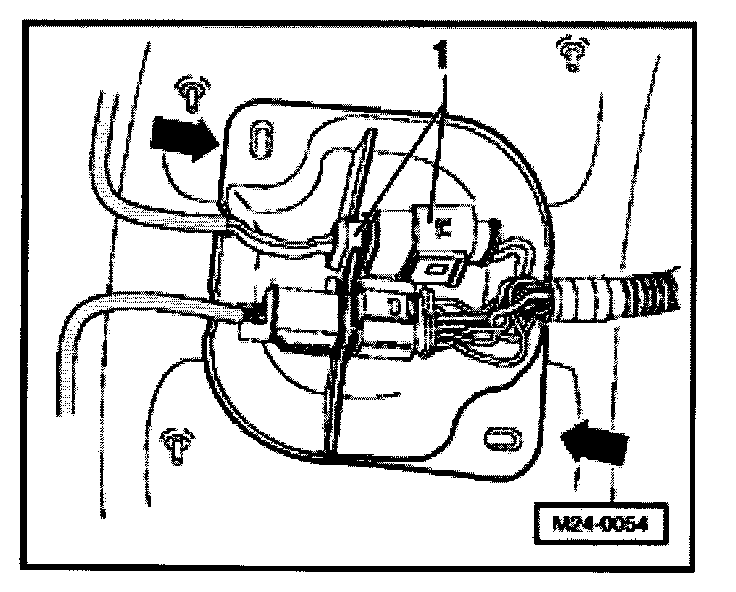 - Remove protective cover (arrows) and disconnect 4-pin harness connector (brown) -1 - to oxygen sensor after Three Way Catalytic Converter (TWC) -G130-.