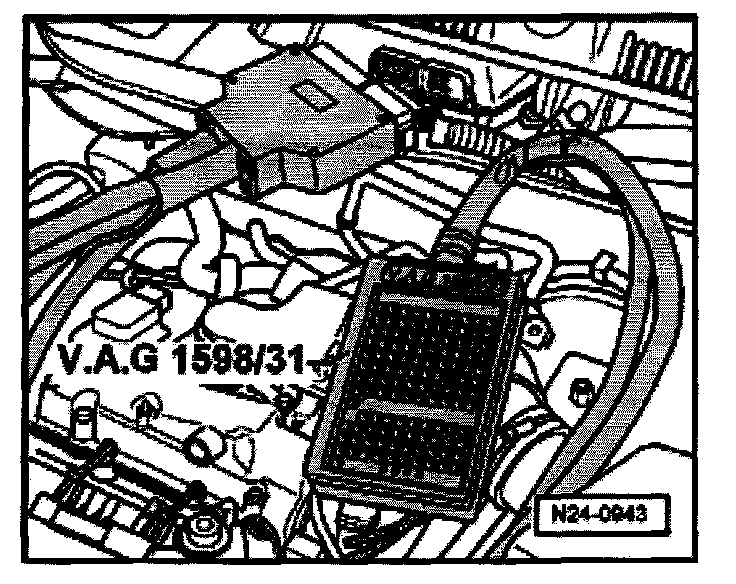 - Connect VAG1598/31 test box to Engine Control Module (ECM) wiring harness. Engine Control Module (ECM) is not connected by this action.