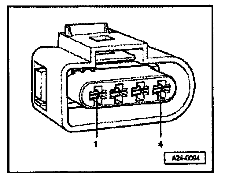- Check wiring at harness connector terminals -3- + -4- for short circuit to terminals -1- + -2- according to wiring diagram.