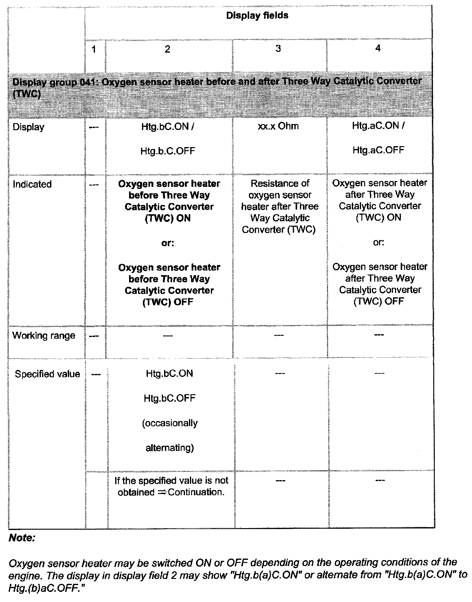 - Check specified values for oxygen sensor heater in display field 2.