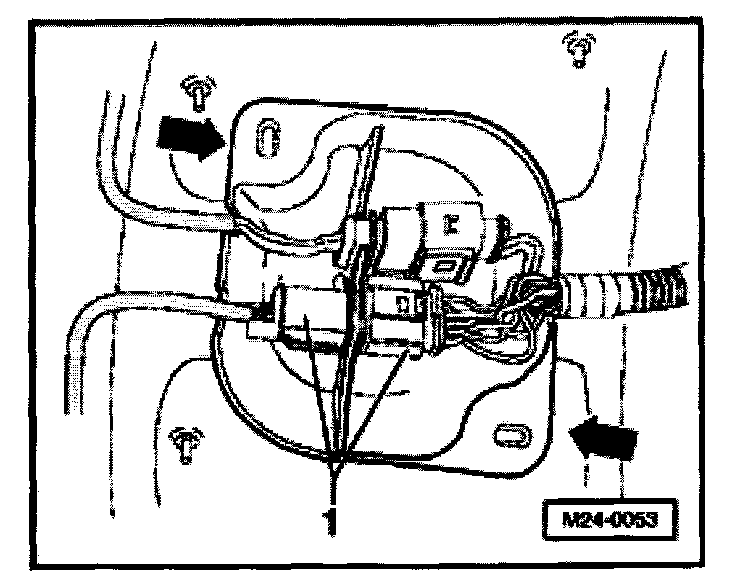 - Remove protective cover (arrows) and disconnect 6-pin harness connector (black) -1- to Heated Oxygen Sensor (HO2S) -G39- before Three Way Catalytic Converter (TWC).