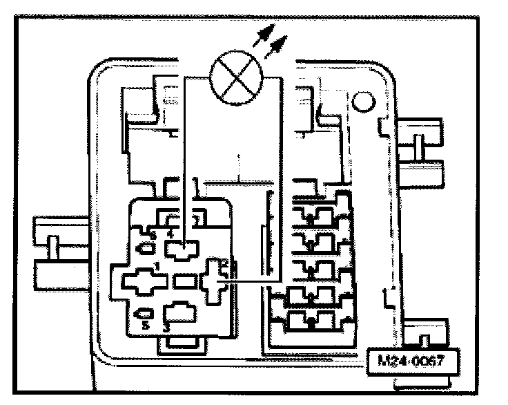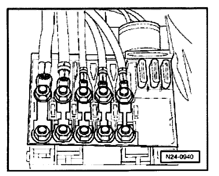 - Using adapter cables from VW1594 connect VAG1527B voltage tester to terminals 3 and 4 on relay plate.