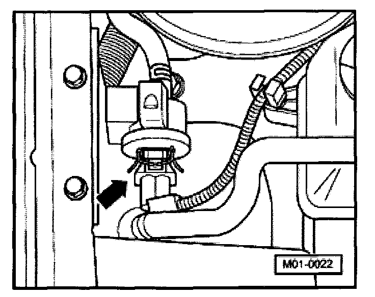 - Disconnect 2-pin harness connector from Secondary Air Injection (AIR) pump motor -V101- (arrow).