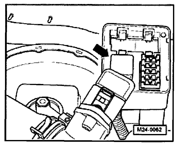 - Disconnect Secondary Air Injection (AIR) pump relay -J299- (arrow) from relay plate in control module protective housing.