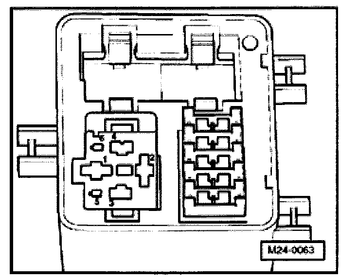 - Using adapter cables from VW1594 connect VAG1527B voltage tester to terminal 1 of relay plate and body Ground (GND).