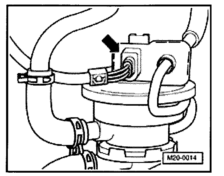- Disconnect 2-pin harness connector from Evaporative Emission (EVAP) canister purge regulator valve -N80- (arrow).