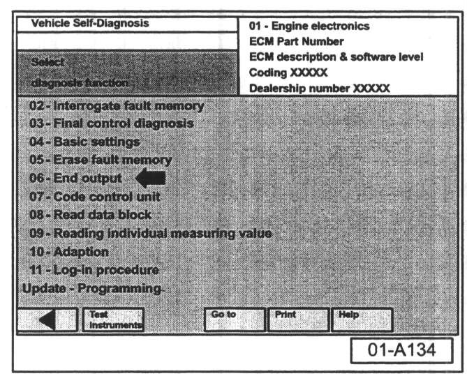 - Select Diagnosis function 06 "End output".