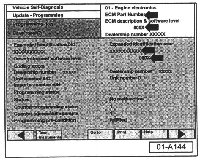 ^ ECM Part Number and old software level is still displayed at (arrows).