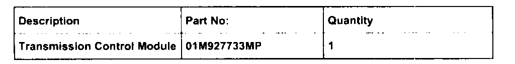 ^ Install new TCM Part No: 01M927733MP, (software level 5060)