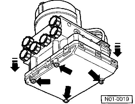 ^ Only remove the sealing plugs on the new hydraulic unit just before installing the corresponding brake line.