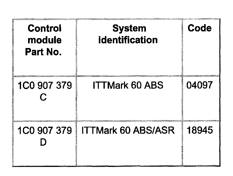 ^ ABS warning light -K47- and warning light for brake system -K118- flash when control module -J104- is coded with 00000. An entry is not made in the DTC memory.