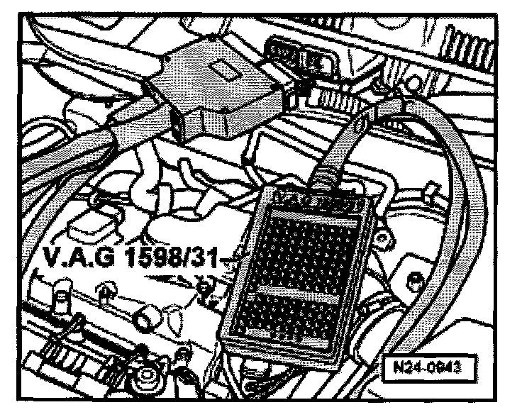- Connect test box VAG 1598/31 to control module wiring harness. The engine control module remains disconnected.