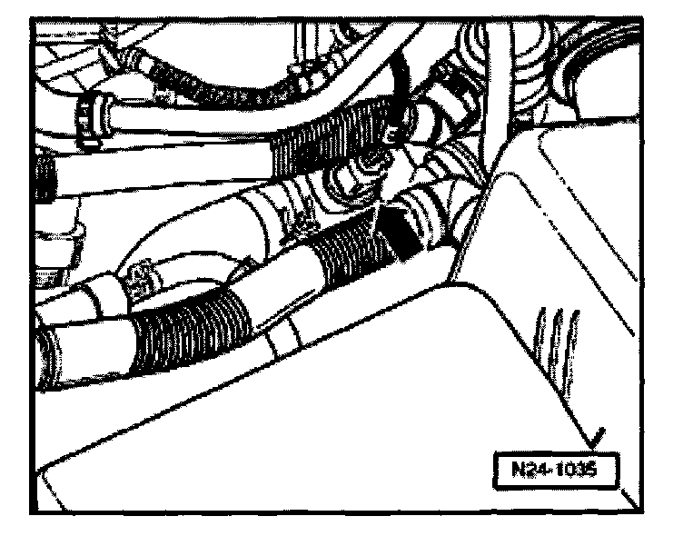- Pull 4-pin connector off Engine Coolant Temperature (ECT) sensor (G62) with coolant temperature gauge sender (G2) (arrow).
