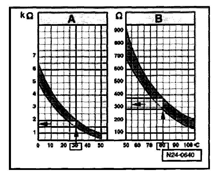 - 30 °C is in range A and corresponds to a resistance of 1.5 - 2.0 kOhms