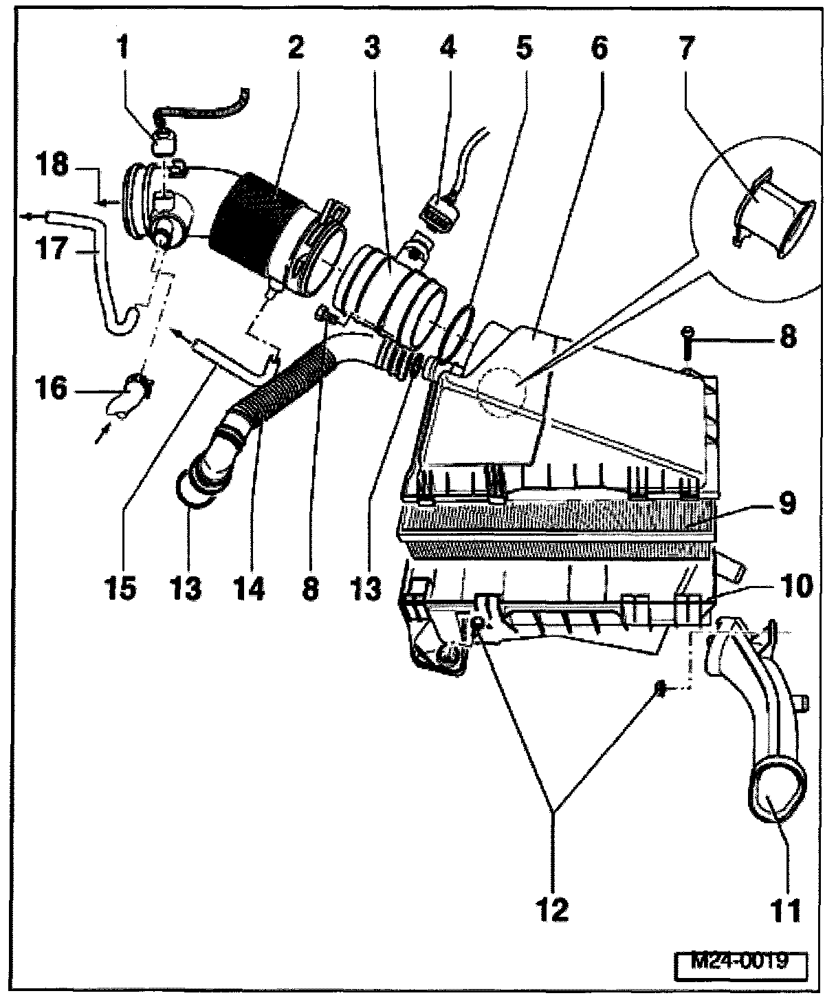 3 - Mass Air Flow (MAF) sensor -G70-* with Intake Air Temperature (IAT) sensor -G42-*