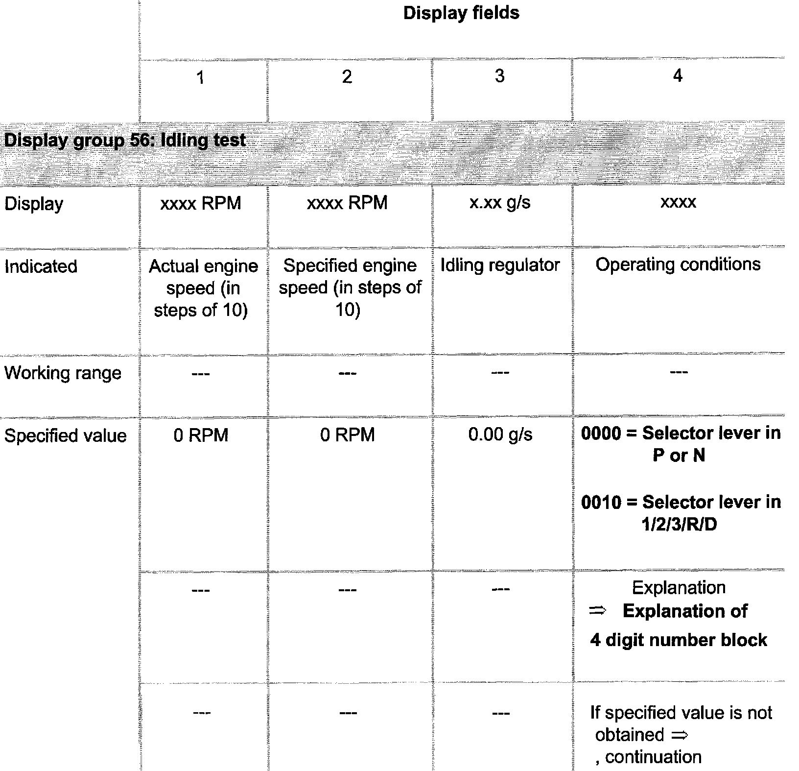 Indicated on display: (1-4 = display fields)