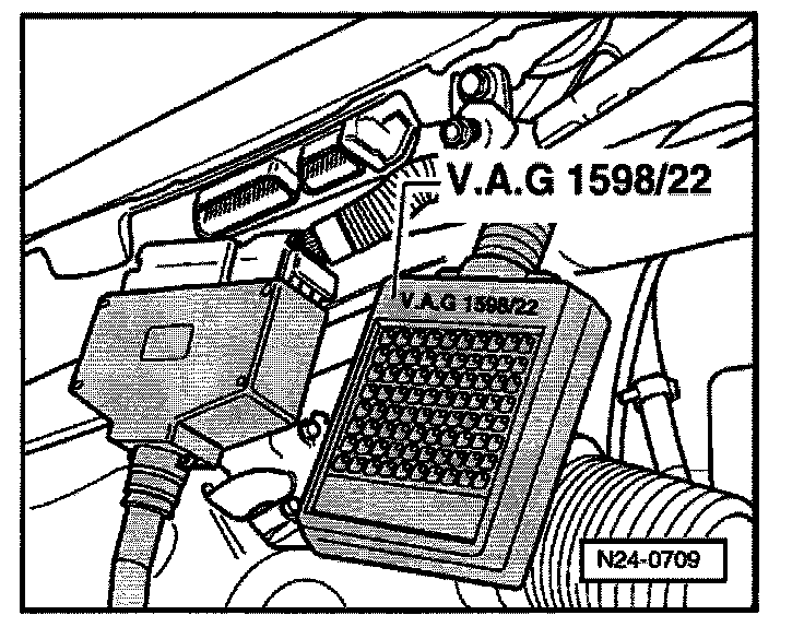 - Connect VAG1598/22 test box to control module wiring harness connector.