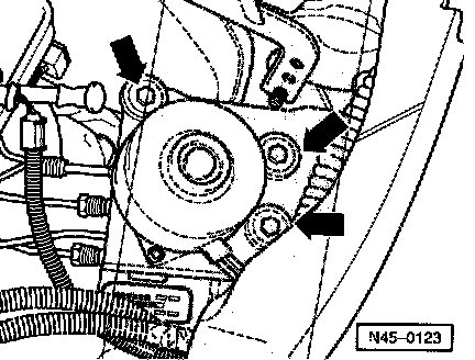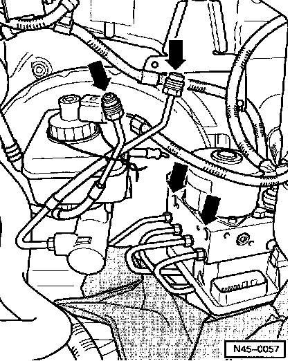 - Disconnect brake lines from hydraulic unit to brake master cylinder (arrows) and suspend with wire.
