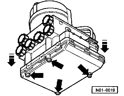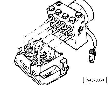 ^ Only remove sealing plugs on the new hydraulic unit just before installing the corresponding brake line.