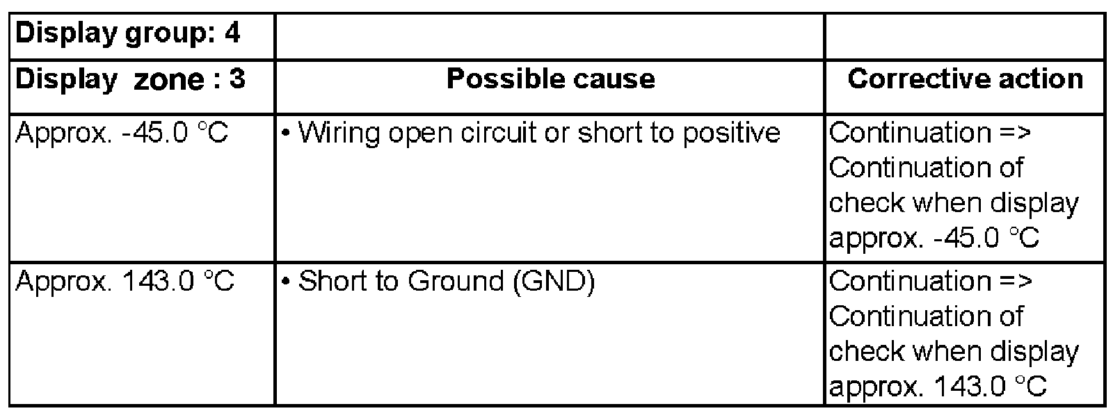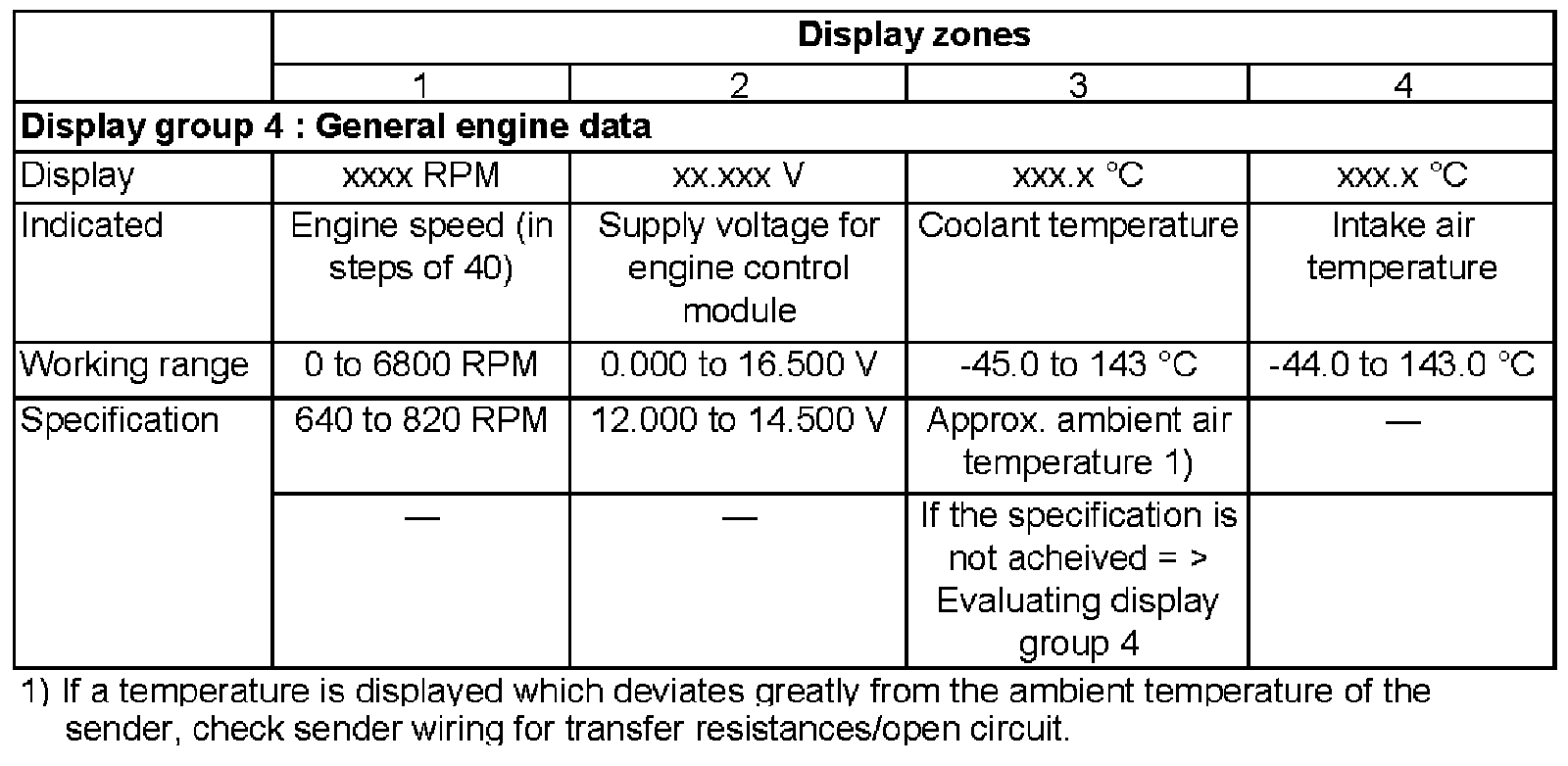 Evaluating display group 4, display zone 3 - Coolant temperature