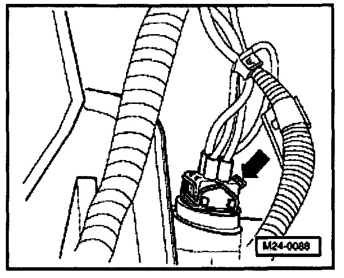- Pull the 4 pin connector oft Engine Coolant Temperature (ECT) sensor (G62) with coolant temperature gauge sender (G2) - arrow-.