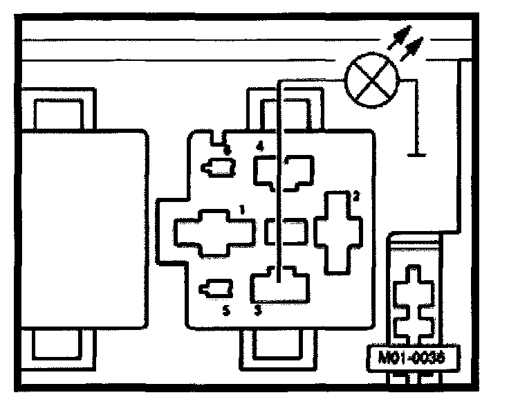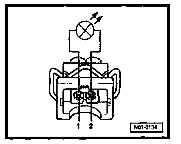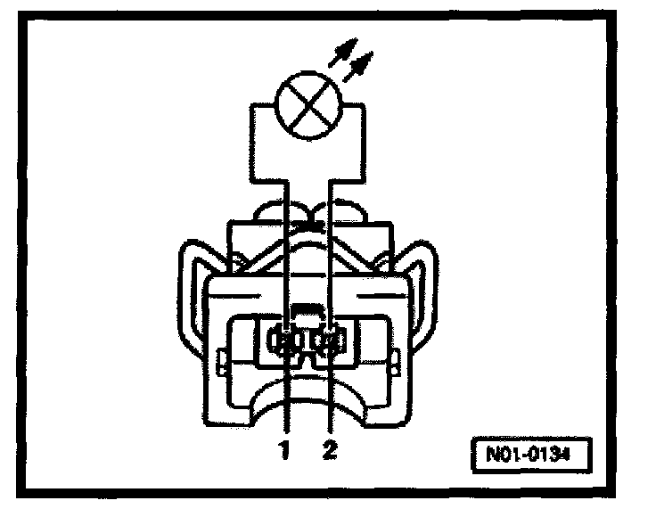 - Using adapter cables from V.A.G 1594 connect the diode test lamp V.A.G 1527 to contact 3 of relay plate and body Ground.