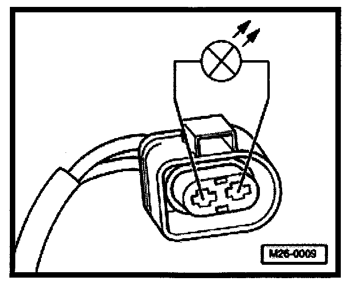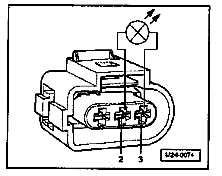 - Connect diode test lamp V.A.G 1527 between detached connector contacts 2 and 3 using adapter cables from V.A.G 1594.