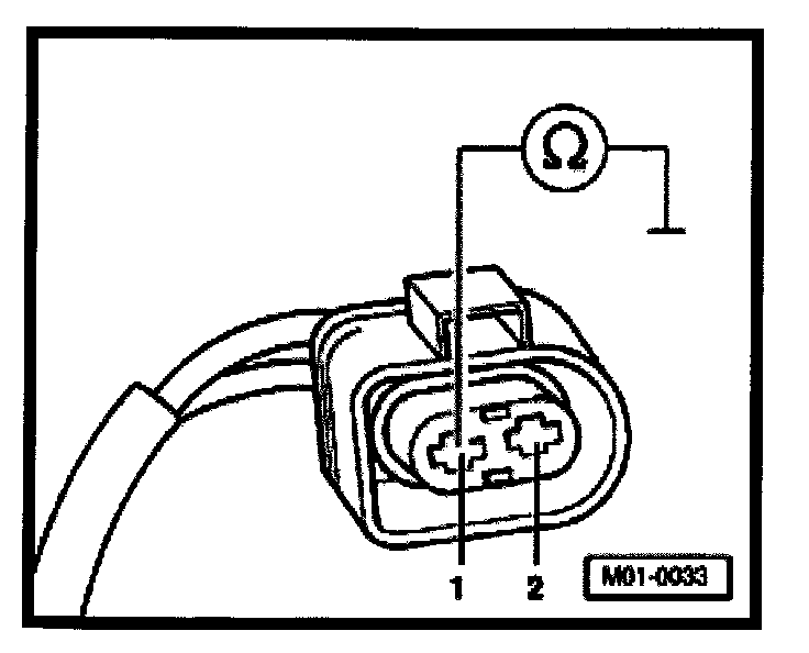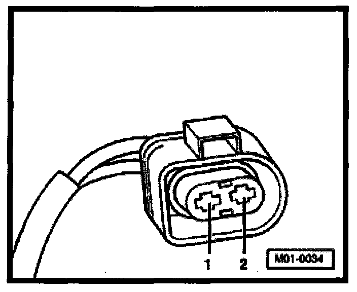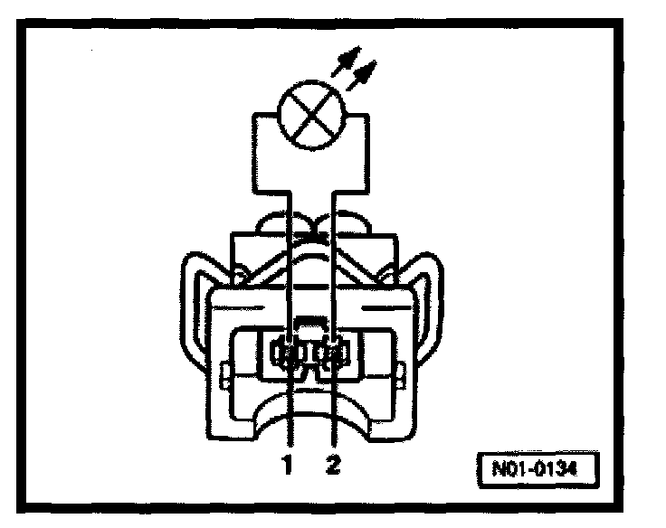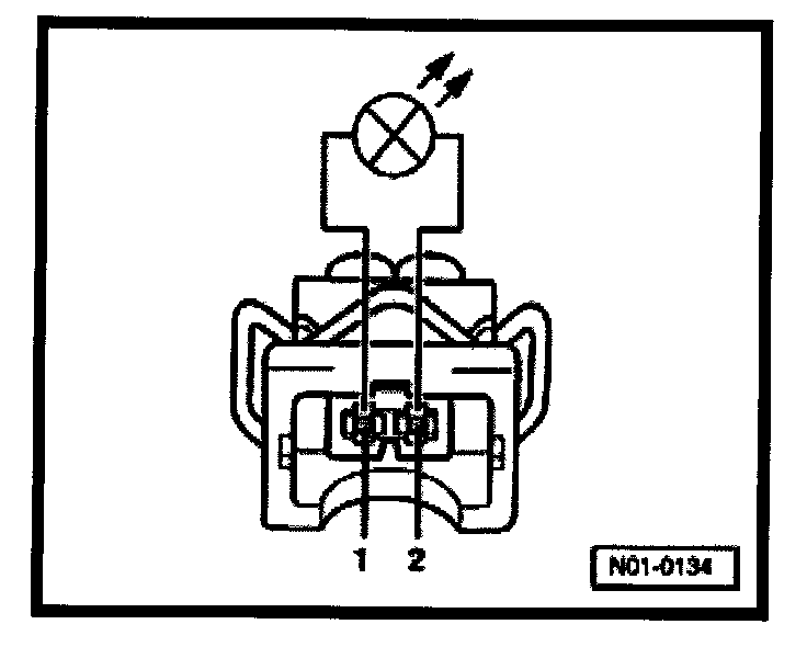 - Connect diode test lamp V.A.G 1527 using adapter cables from V.A.G 1594 to detached connector.