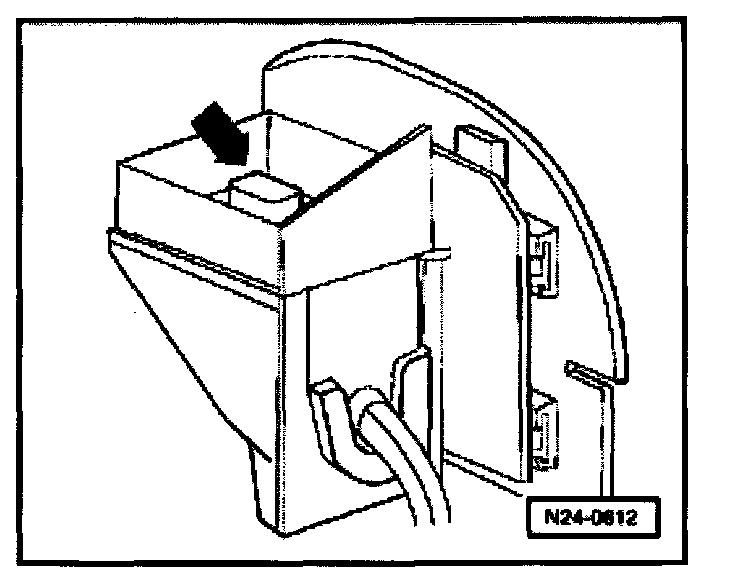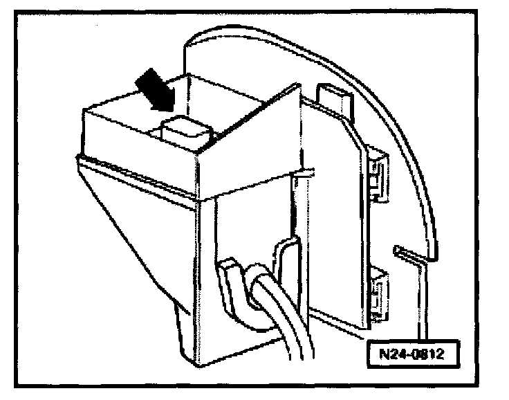 - Pull secondary air pump relay -arrow- off relay plate in control module protective housing.