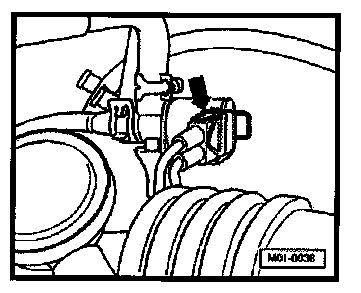 - Pull 2-pin connector off secondary air pump motor (V101) -arrow-.