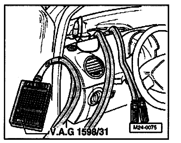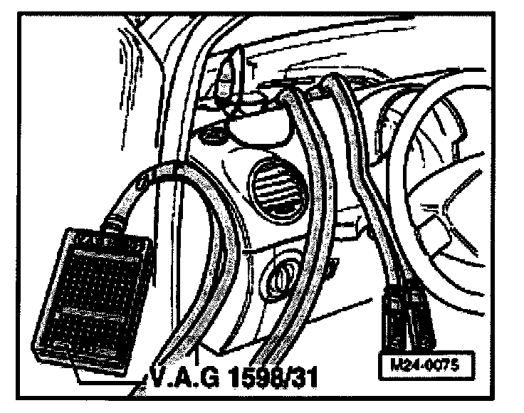 - Connect test box V.A.G 1598/31 to control module wiring harness. The engine control module is not connected by this action.