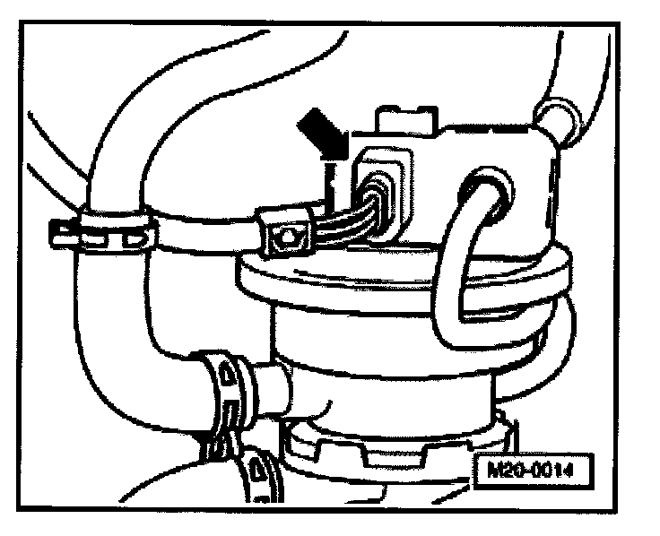 - Pull the 2 pin connector off solenoid valve (N80) -arrow-.