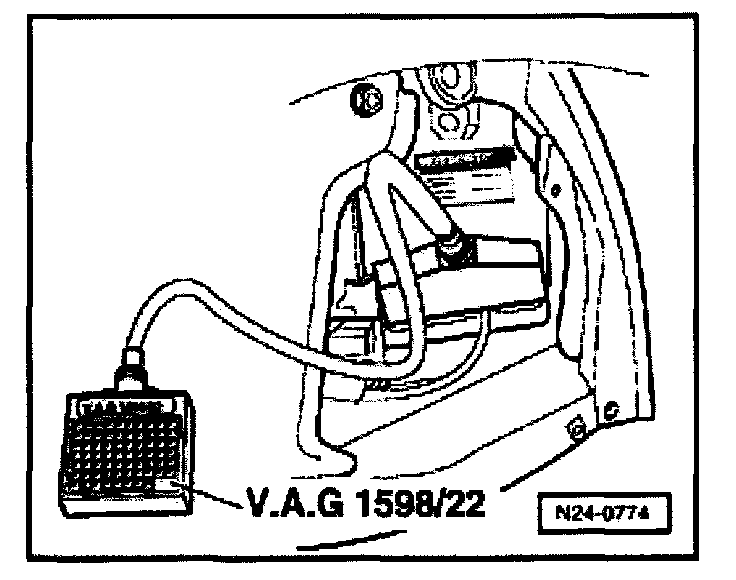 - Connect VAG 1551/1552 Scan Tool. Refer to "Scan Tool Testing/Scan Tool Connecting and Initial Checks", Testing and Inspection