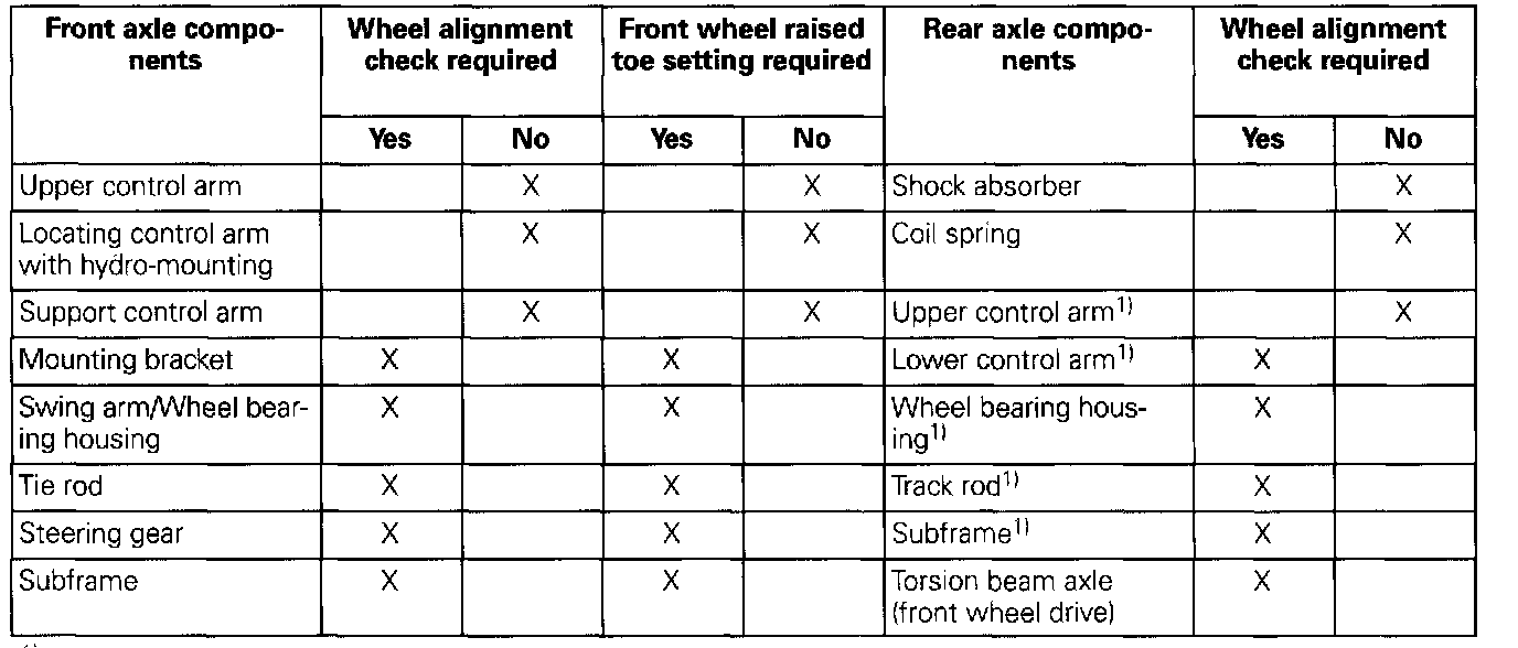 ^ After performing servicing work on the suspension, road test the vehicle before checking the wheel alignment.