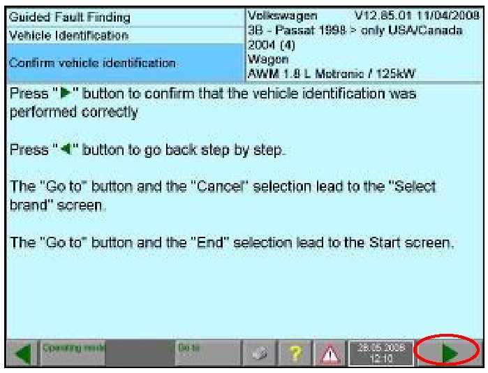 - Confirm vehicle identification -circle- GFF will begin to interrogate control units automatically