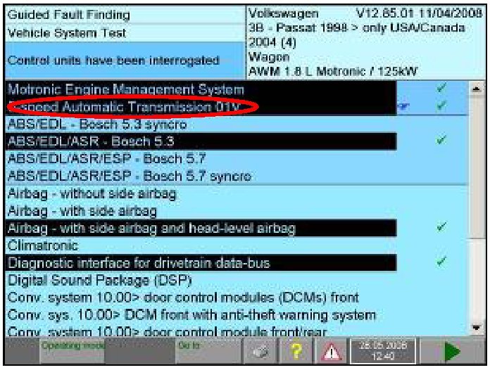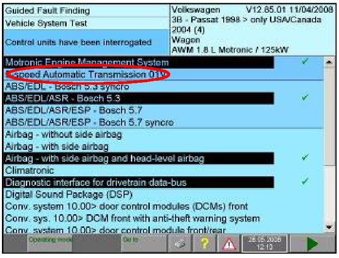 - Once control units have been interrogated, check to see if Automatic Transmission is highlighted