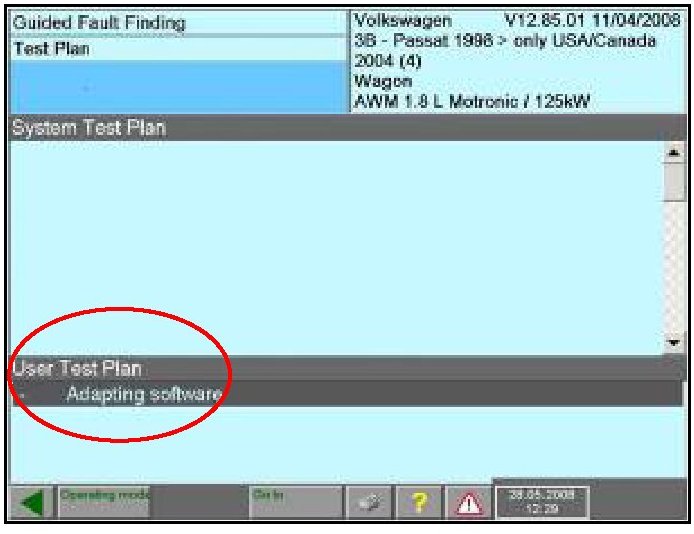 - Follow on-screen prompts for Adapting software test plan
